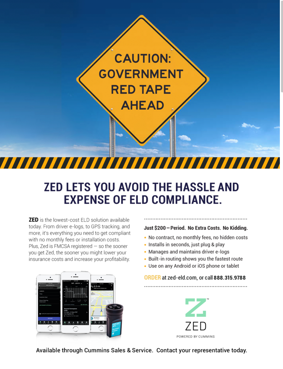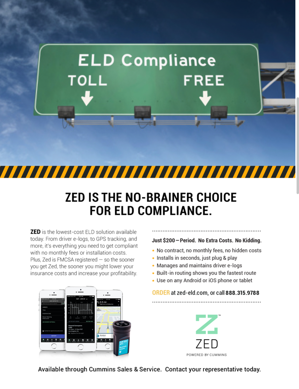 The Cummins diesel brand has been synonymous with powering long-haul trucks for more than 100 years. So when the US Department of Transportation recently mandated truckers install Electronic Logging Devices (ELDs) in their engines to monitor and report on their driving safety, Cummins was there with an innovative product — the ZED ELD. They also hired the Zealista team to position and market the new product leveraging the Cummins brand equity, a very competitive no-monthly-fee offer, and the trucker attitude of independence and distaste for government overreach.