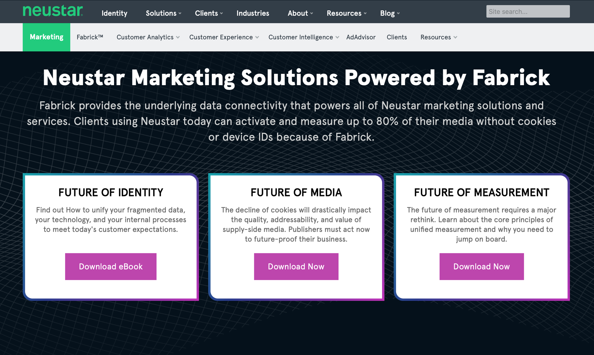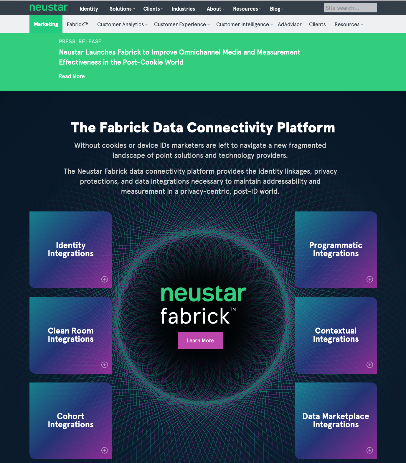 With a no-cookie world becoming a reality, Neustar engaged Zealista to help re-position and re-architect their industry-leading analytics and intelligence platform — which was based heavily on the 3rd-party cookie model. After researching consumers’ needs and wants about their data strategies, consumers’ feelings about data privacy, transparency and choice, and working closely with Neustar’s marketing and product teams, we defined a new vision and identity for the company’s unified identity ecosystem, branding it Fabrick.™ With a new brand name inspired by Neustar’s vast and interwoven identity resolution solutions, Fabrick today drives marketing services for Fortune 500 companies, providing secure and engaging connections between brands, publishers, and consumers.