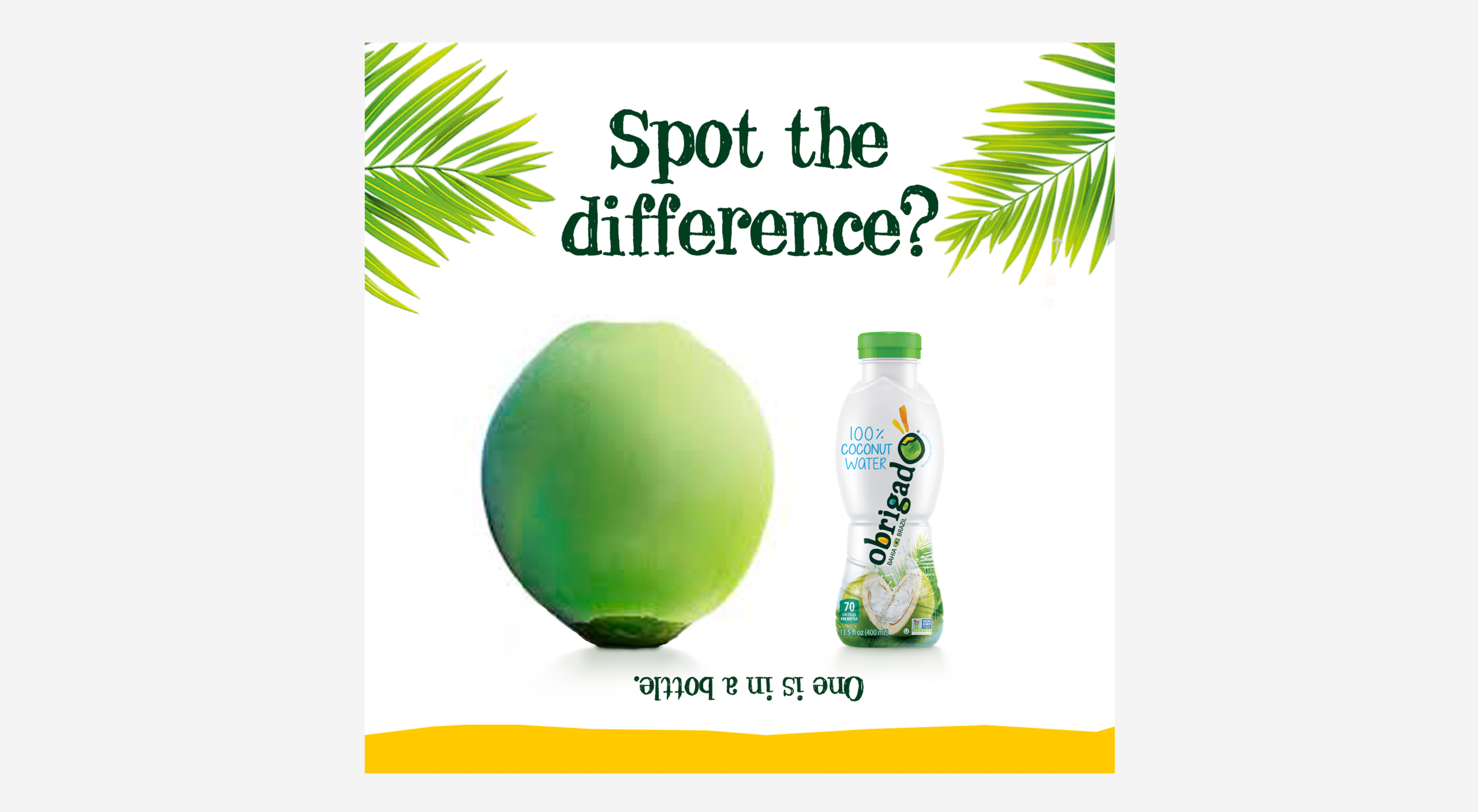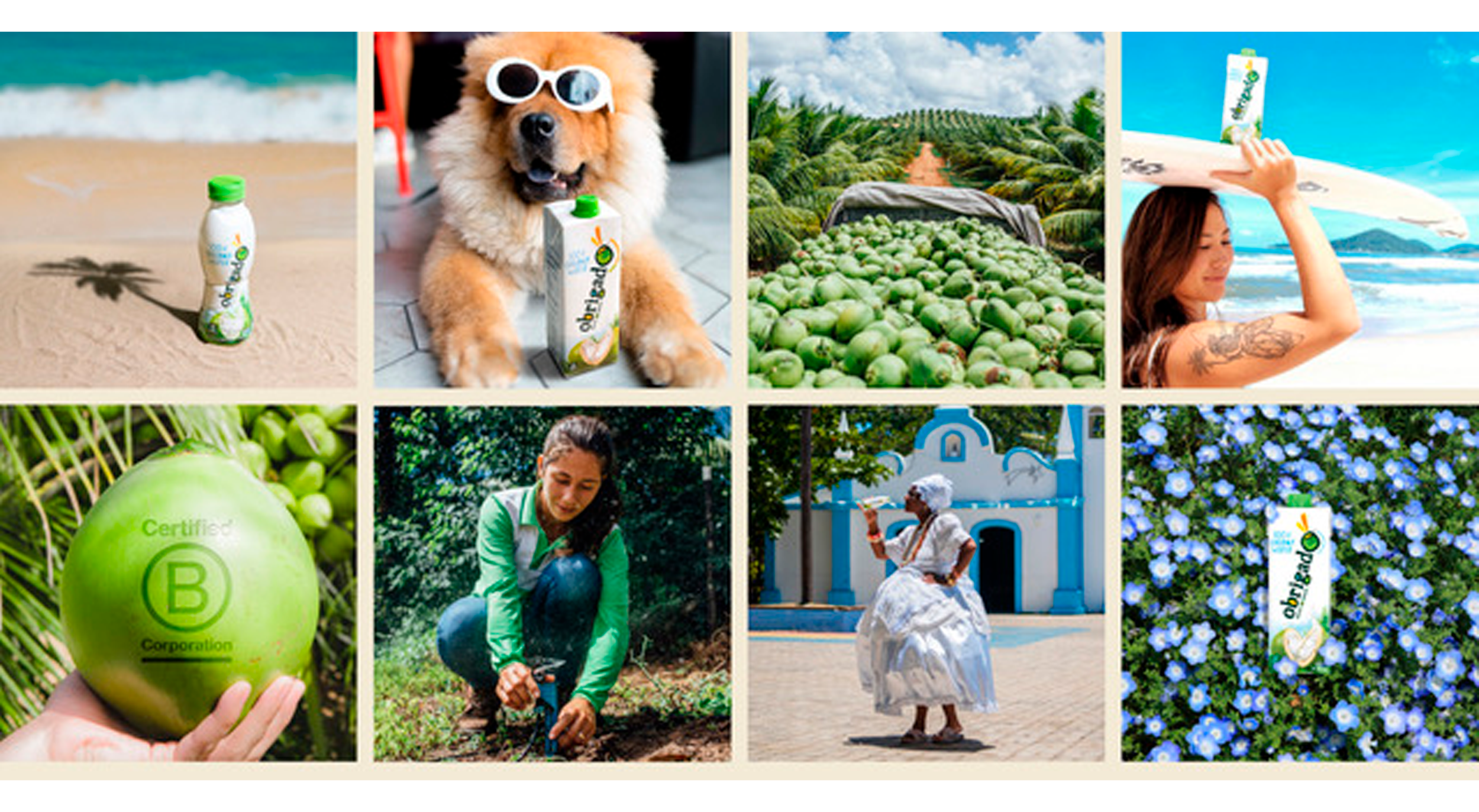 When one of the largest Brazilian coconut product companies names you U.S. Agency of Record, you say “Obrigado,” or “Thank You!”, in Portuguese. Then you get to work. Because Obrigado was entering one of the most crowded categories in the country — coconut water — dominated by entries from Coca-Cola and Pepsi, and littered with specious health and purity claims. But Obrigado’s the real deal. It’s extracted from coconuts and bottled completely anaerobically, meaning the first time it encounters air or the outside world is when you open your bottle. Our work touched every aspect the new brand, from messaging and positioning, to packaging and point of sale, website and e-commerce, advertising and PR, social media and ambassador management, and trade shows and sales support. All inspired by the color and creativity of the Bahian culture.